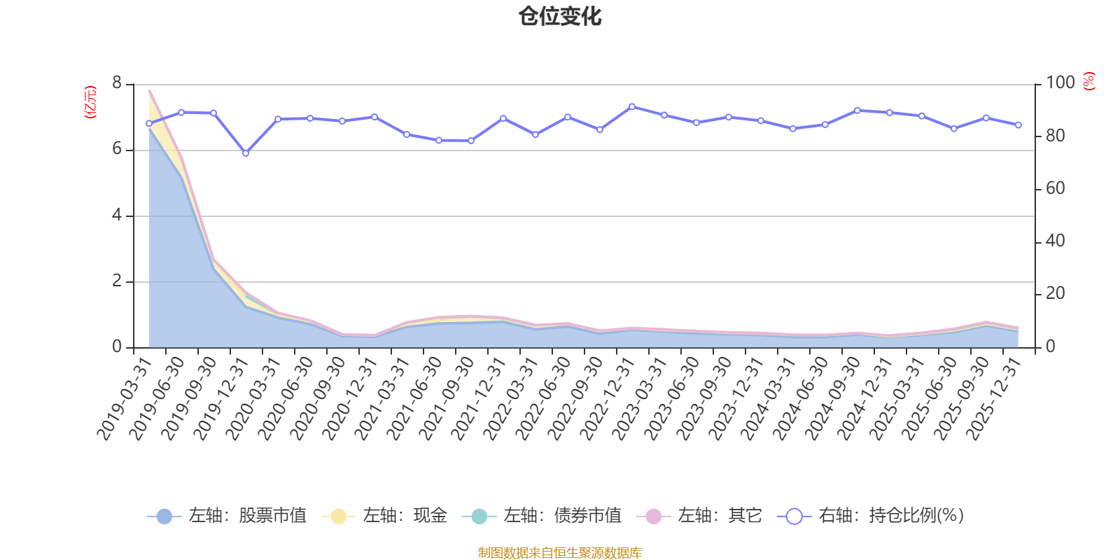 据定期报告数据统计,近三年平均股票仓位为86.36%,同类平均为72.57%。2022年末基金达到91.41%的最高仓位,2019年末最低,为73.72%。