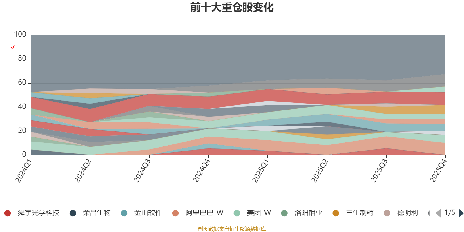 该基金持股集中度较高。截至2025年末,基金十大重仓股分别是腾讯控股、中芯国际、阿里巴巴-W、华虹半导体、美团-W、快手-W、中际旭创、小米集团-W、哔哩哔哩-W、小鹏集团-W。