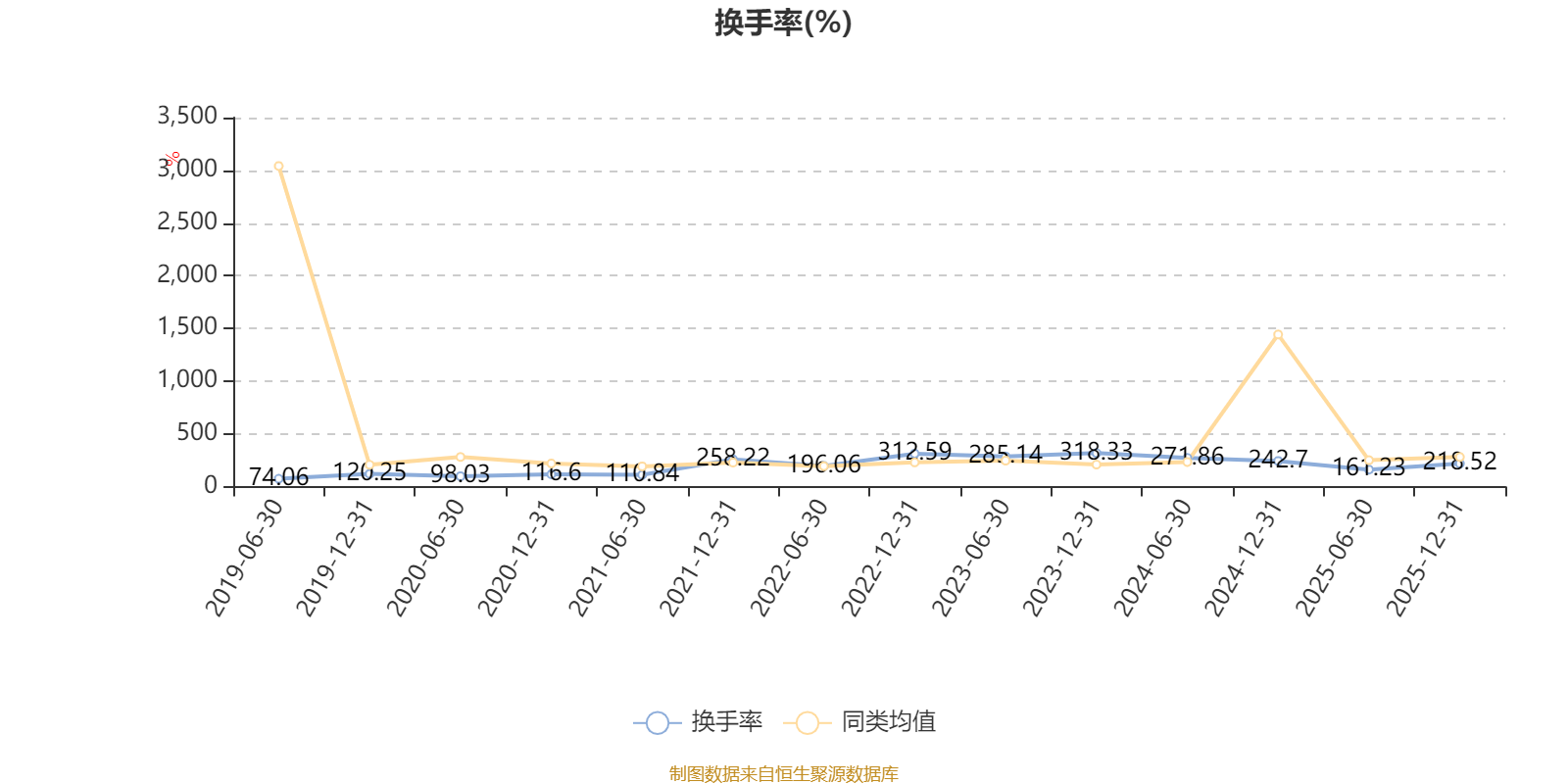 截至2025年12月31日,基金最近一年换手率约389.19%,持续1年低于同类均值。