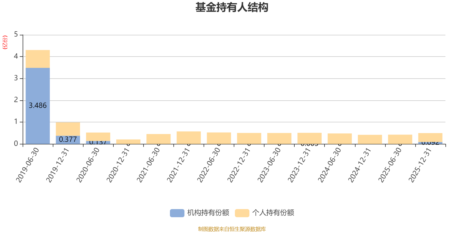 截至2025年12月31日,基金持有人共计2.05万户,合计持有4989.1万份。其中管理人员工持有11.12万份,占比0.22%,机构持有份额占比18.40%,个人投资者占比81.60%。