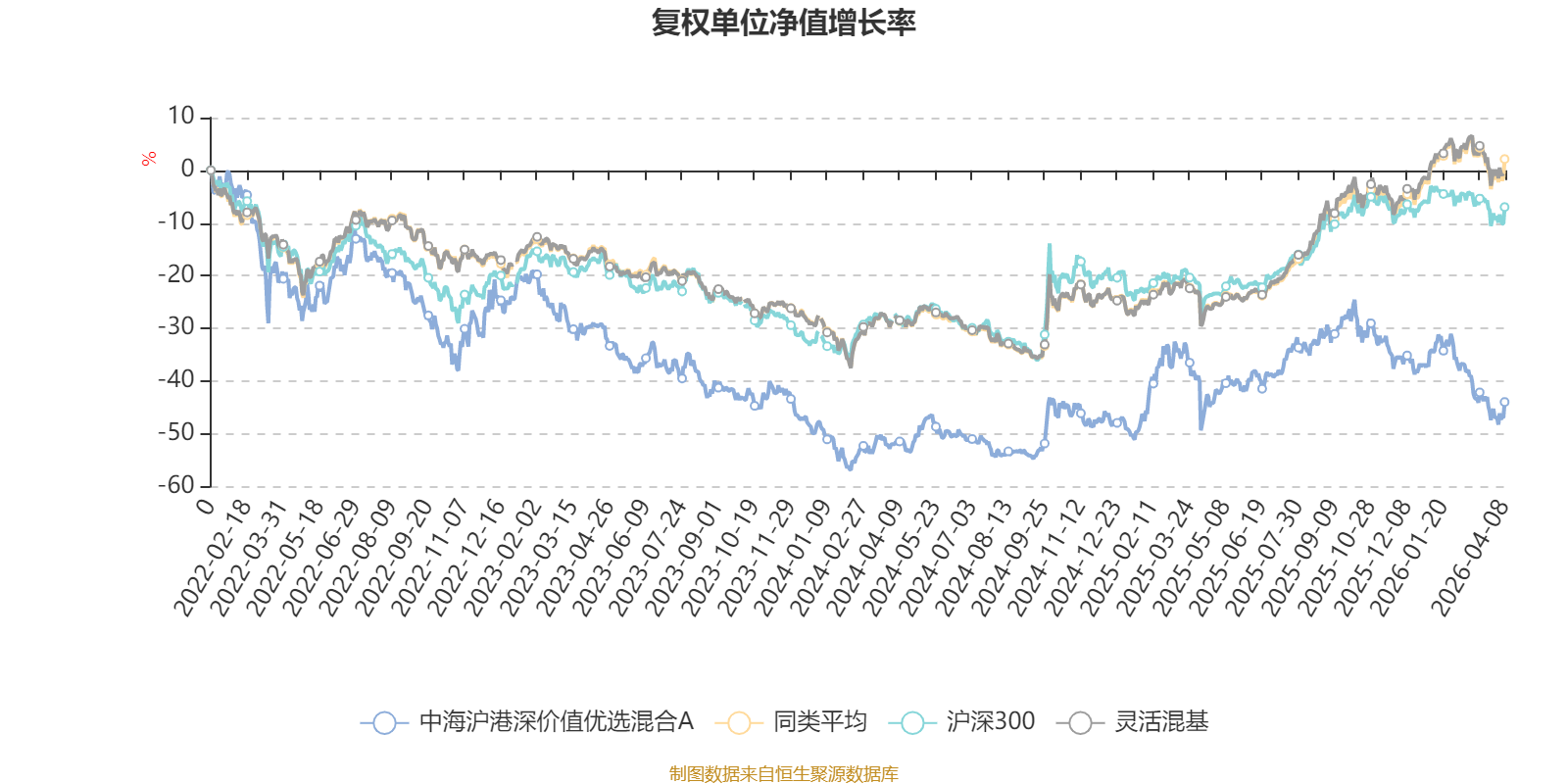 截至4月8日,中海沪港深价值优选混合A近三个月复权单位净值增长率为-14.38%,位于同类可比基金1271/1287;近半年复权单位净值增长率为-24.82%,位于同类可比基金1284/1286;近一年复权单位净值增长率为8.01%,位于同类可比基金1104/1286;近三年复权单位净值增长率为-21.11%,位于同类可比基金1214/1286。