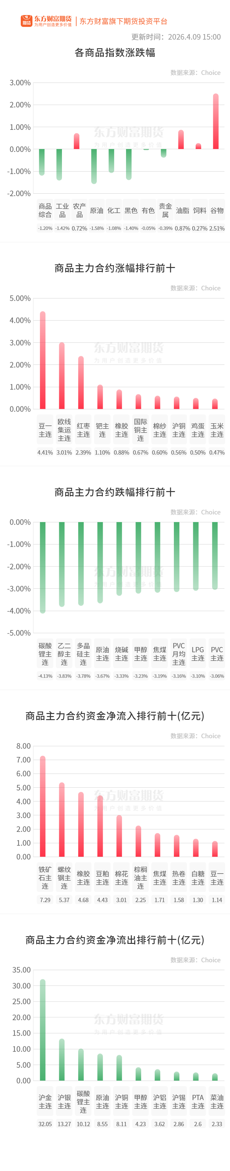 钢材:据Mysteel,截至4月9日当周,螺纹产量连续两周增加,厂库、社库连续四周下降,表需连续七周增加。螺纹产量215.59万吨,较上周增加8.49万吨,增幅为4.1%;螺纹厂库207.54万吨,较上周减少1.11万吨,降幅为0.53%;螺纹社库619.66万吨,较上周减少12.44万吨,降幅为1.97%;螺纹表需229.14万吨,较上周增加0.88万吨,增幅为0.39%。