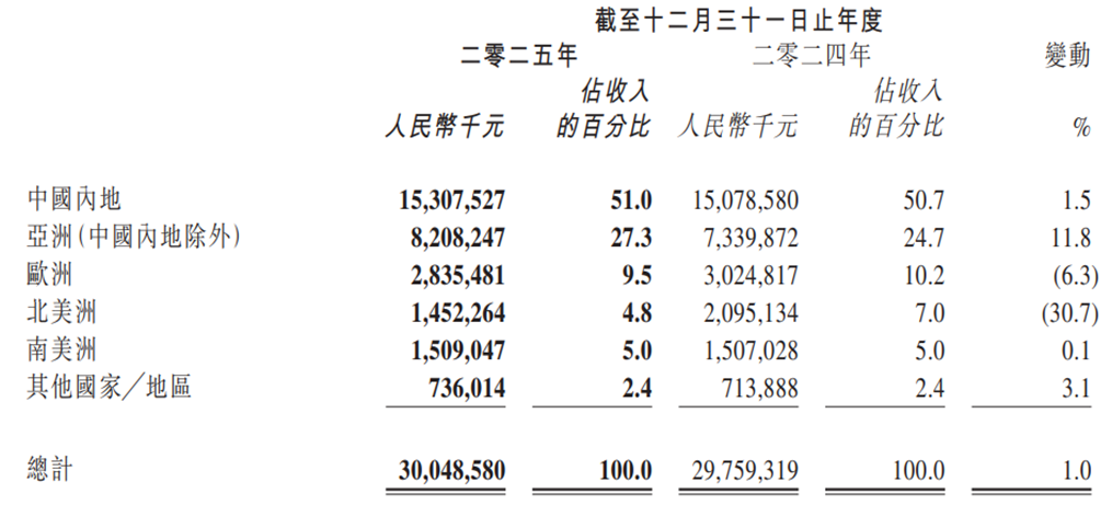 另一方面,公司在海外市场布局失衡,并且自有品牌影响力薄弱。2025年,公司海外收入占比接近50%,但区域表现分化严重,北美洲市场大幅下滑30.7%,欧洲市场下滑6.3%,主要受美国关税政策持续扰动、地缘政治冲突等因素影响。更为关键的是,公司海外业务以ODM模式为主,议价能力较弱,难以获得较高的盈利空间,且受客户订单波动影响极大。