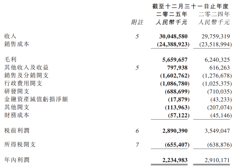 另一方面,销售费用的压力进一步侵蚀了盈利空间。财报显示,2025年,公司销售及分销开支同比增加25.5%至16.03亿元,主要因海外业务扩张、新设立海外销售公司及市场推广费用增加。2025年奥克斯新设越南、沙特、迪拜等5家海外销售公司。与之形成鲜明对比的是,研发开支却同比下降3.0%至6.89亿元,研发费用率仅2.3%,销售费用约为研发费用的1.33倍,公司称此举是为“优化研发人员结构、提升资源分配效率”,但在行业技术迭代加速的背景下,研发投入的收缩或进一步削弱其核心竞争力。