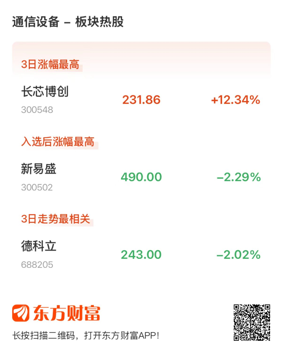 4月9日,A股三大指数今日集体回调,截止收盘,沪指跌0.72%,收报3966.17点;深证成指跌0.33%,收报13996.27点;创业板指跌0.73%,收报3323.30点。盘面上,通信设备行业板块涨0.82%;个股方面,特发信息、光迅科技等涨停,长芯博创、仕佳光子等均有不同程度上涨。