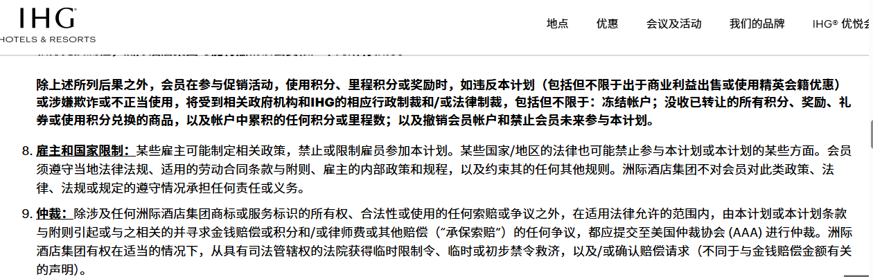 图片来源:洲际会员条款截图
