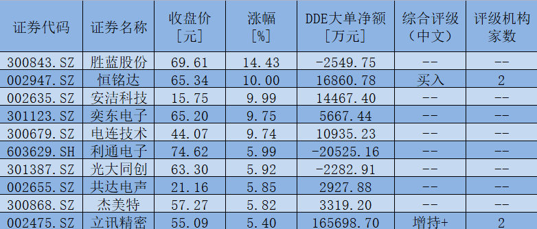 4月9日,消费电子板块涨幅超5%个股一览姚尧/制表