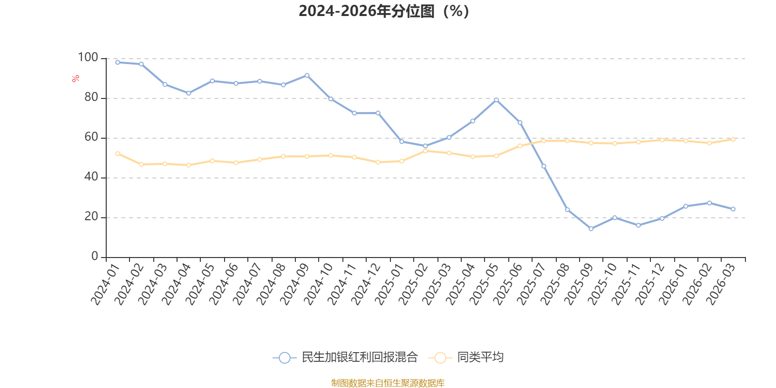 通过所选区间该基金净值增长率分位图,可以观察该基金与同类基金业绩比较情况。图为坐标原点到区间内某时点的净值增长率在同类基金中的分位数。