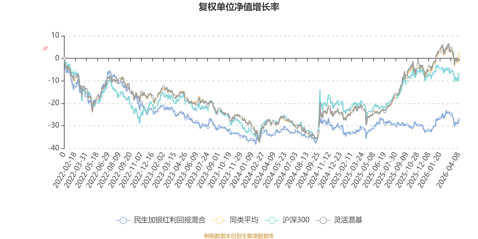 截至4月8日,民生加银红利回报混合近三个月复权单位净值增长率为0.85%,位于同类可比基金543/1287;近半年复权单位净值增长率为5.84%,位于同类可比基金458/1286;近一年复权单位净值增长率为10.67%,位于同类可比基金1048/1286;近三年复权单位净值增长率为-4.44%,位于同类可比基金1036/1286。