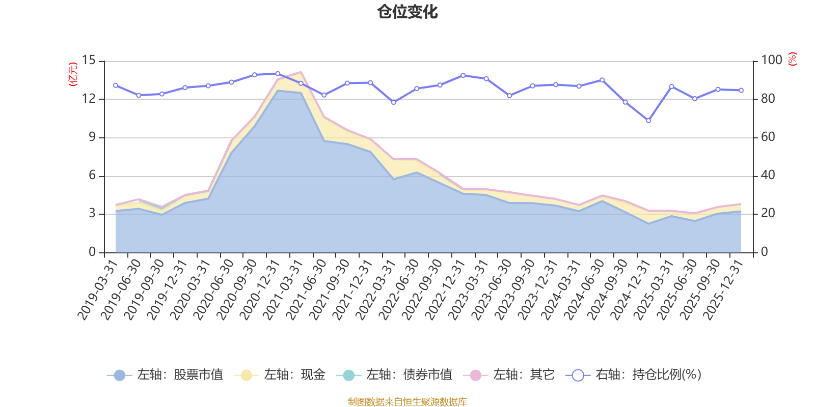 据定期报告数据统计,近三年平均股票仓位为84.08%,同类平均为72.57%。2020年末基金达到93.43%的最高仓位,2024年末最低,为68.91%。