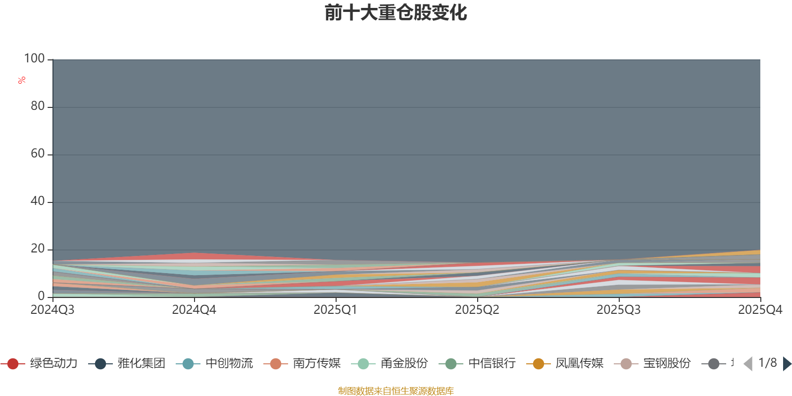 截至2025年末,基金十大重仓股分别是宁波银行、江苏银行、紫江企业、大华股份、南方传媒、绿色动力、建投能源、威孚高科、梅花生物、宝钢股份。