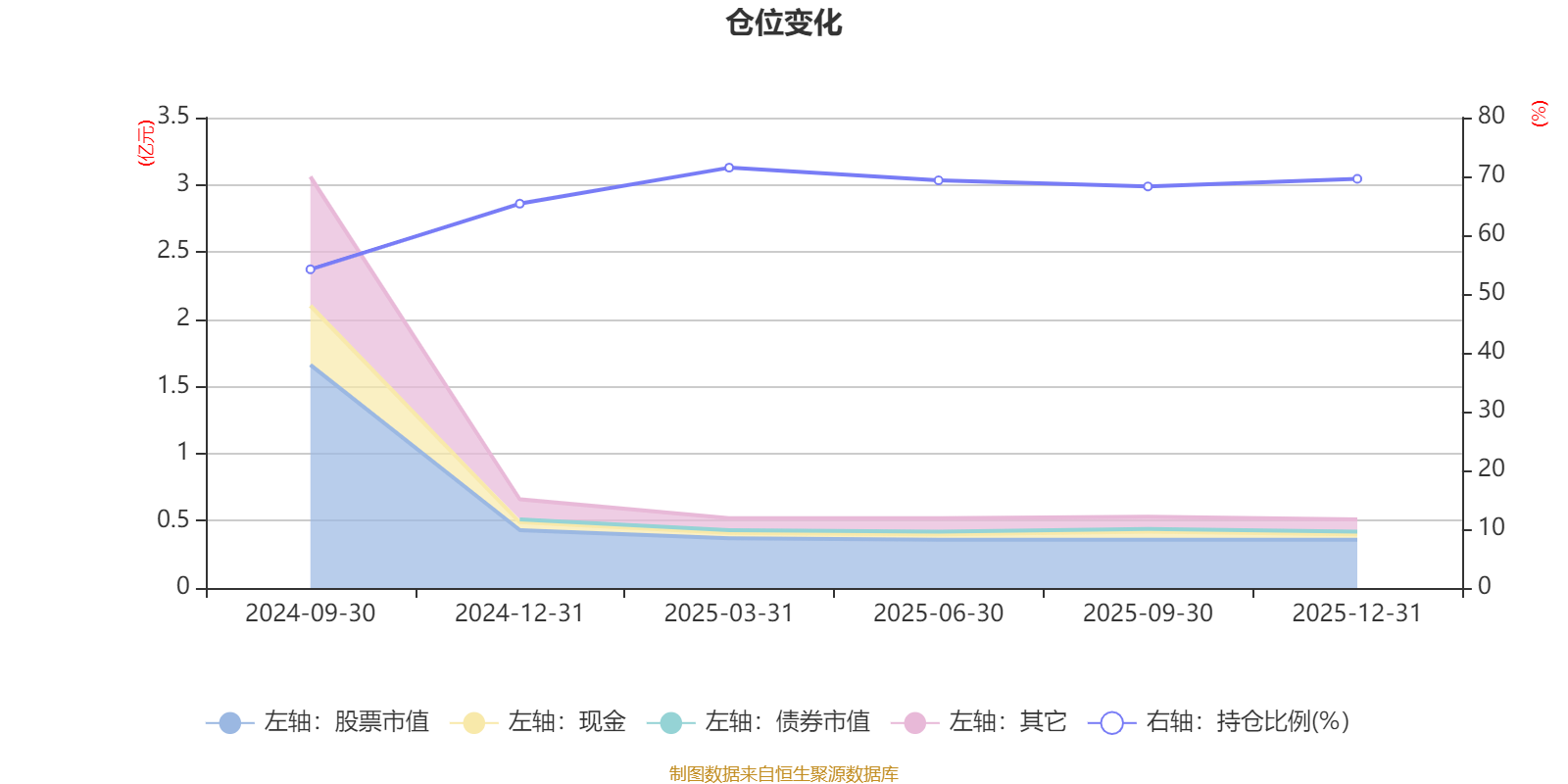 据定期报告数据统计,成立以来平均股票仓位为66.38%,同类平均为84.04%。2025年一季度末基金达到71.48%的最高仓位,2024年三季度末最低,为54.2%。