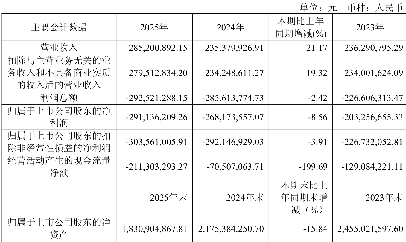 中证智能财讯科思科技(688788)4月10日披露2025年年度报告。2025年,公司实现营业总收入2.85亿元,同比增长21.17%;归母净利润亏损2.91亿元,上年同期亏损2.68亿元;扣非净利润亏损3.04亿元,上年同期亏损2.92亿元;经营活动产生的现金流量净额为-2.11亿元,上年同期为-7050.71万元;报告期内,科思科技基本每股收益为-1.8698元,加权平均净资产收益率为-14.47%。公司2025年度分配预案为:拟向全体股东每10股转4股。