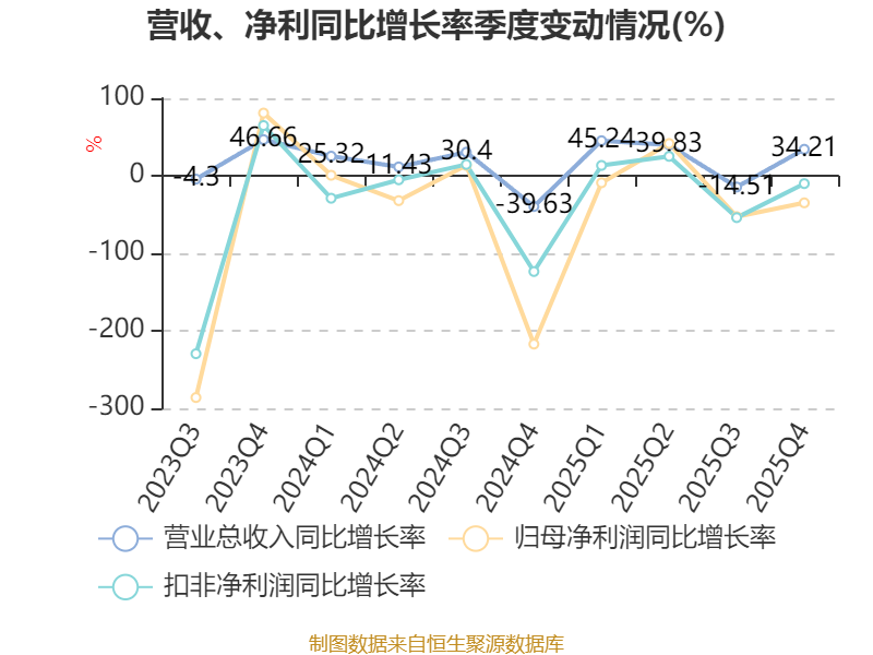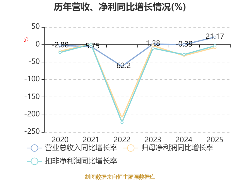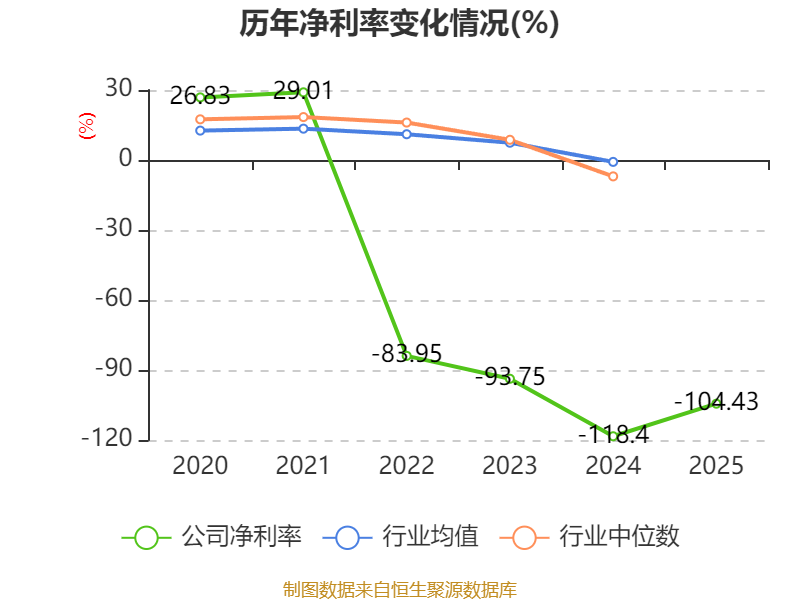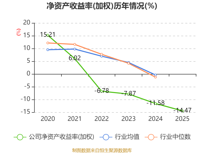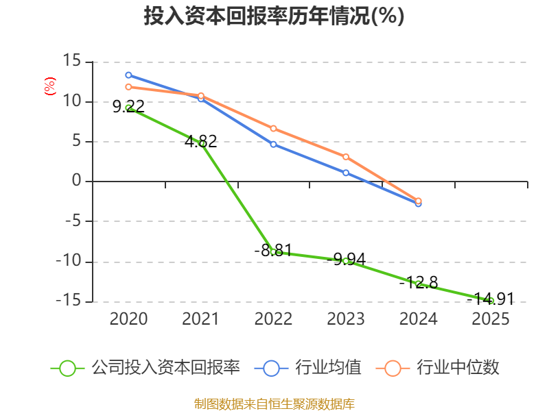 数据显示,2025年公司加权平均净资产收益率为-14.47%,较上年同期下降2.89个百分点。公司2025年投入资本回报率为-14.91%,较上年同期下降2.11个百分点。