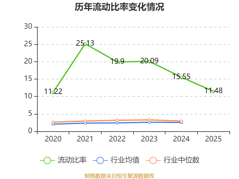 2025年,公司流动比率为11.48,速动比率为9.78。