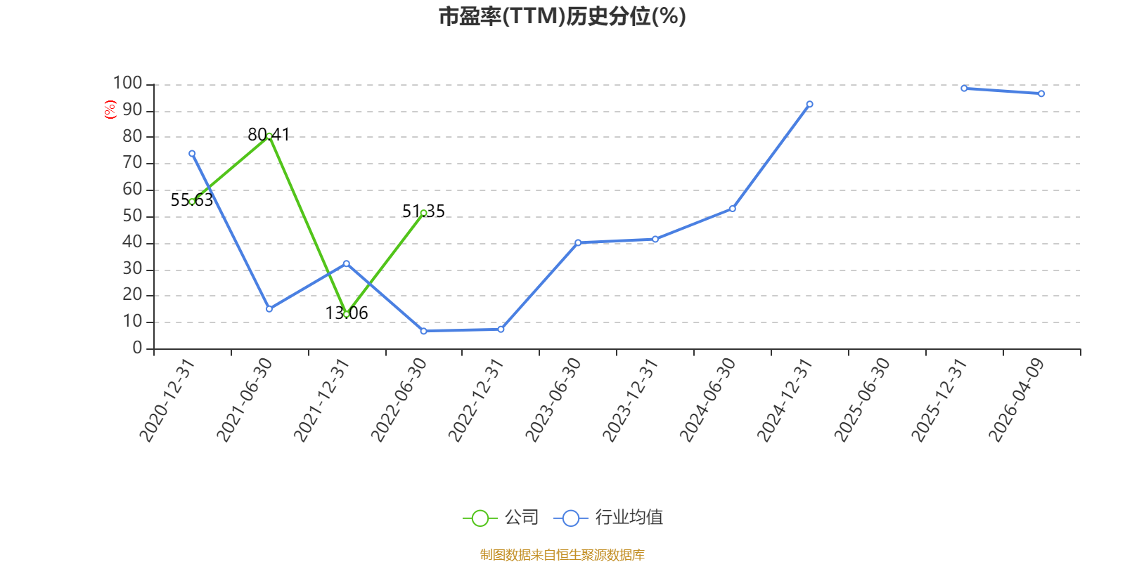 市盈率、市净率为负时,不显示当期分位数,会导致折线图中断。