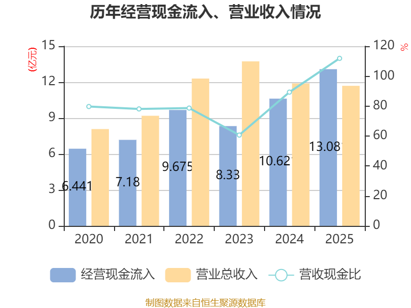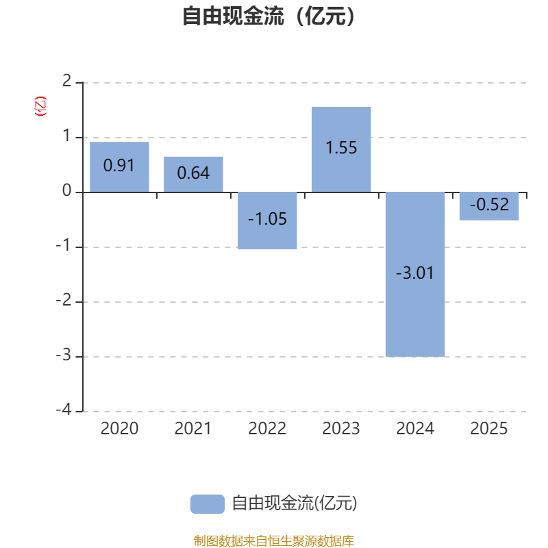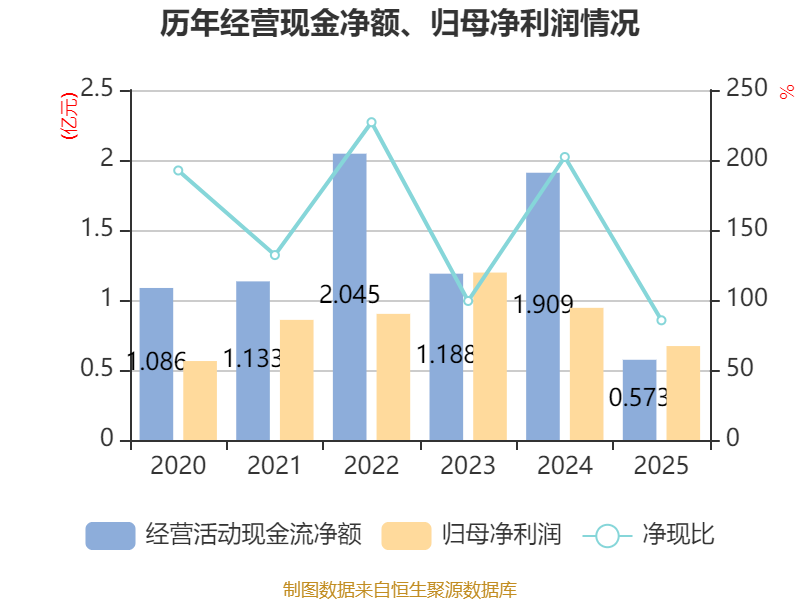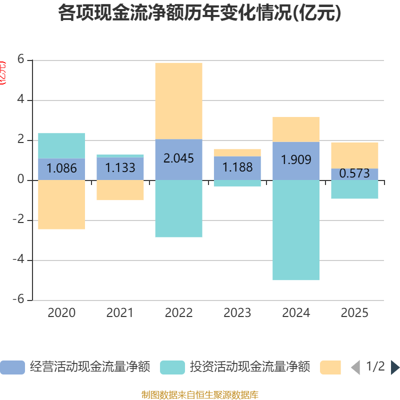 截至2025年,公司经营活动现金流净额为5734.75万元,同比下降69.96%;筹资活动现金流净额1.3亿元,同比增加611.48万元;投资活动现金流净额-9315.01万元,上年同期为-5亿元。