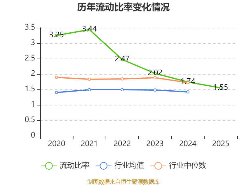 2025年,公司流动比率为1.55,速动比率为1.23。