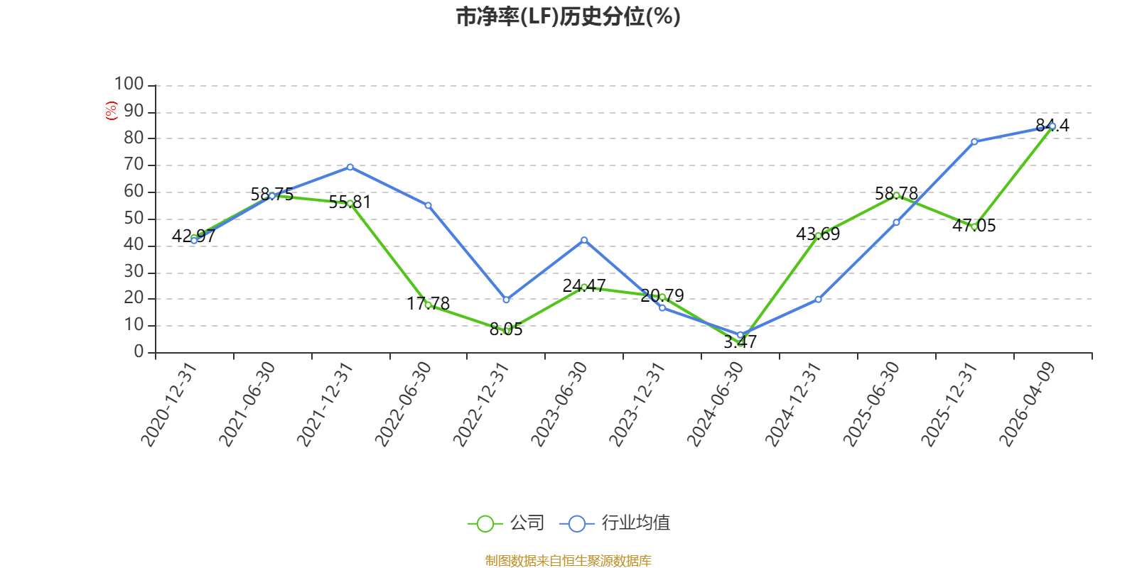 市盈率、市净率为负时,不显示当期分位数,会导致折线图中断。