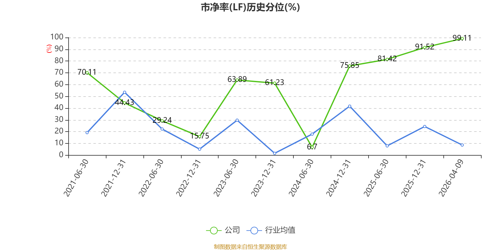市盈率、市净率为负时,不显示当期分位数,会导致折线图中断。