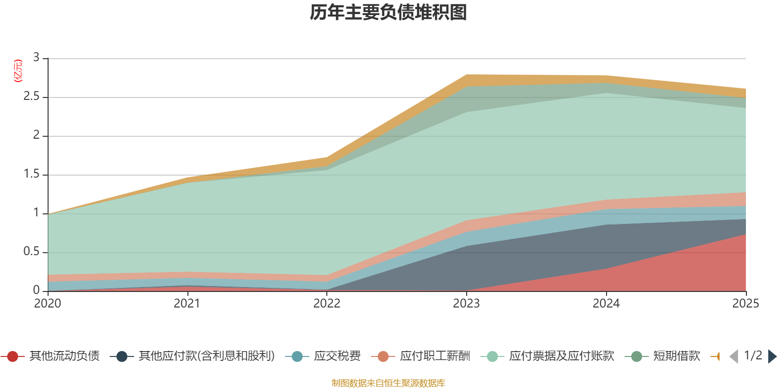 负债重大变化方面,截至2025年末,公司其他流动负债较上年末增加153.9%,占公司总资产比重上升3.29个百分点;其他应付款(含利息和股利)较上年末减少65.58%,占公司总资产比重下降2.89个百分点;应付票据及应付账款较上年末减少21.09%,占公司总资产比重下降2.41个百分点;应付职工薪酬较上年末增加44.72%,占公司总资产比重上升0.39个百分点。