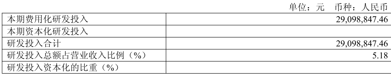 2025年全年,公司研发投入金额为2909.88万元,同比增长14.14%;研发投入占营业收入比例为5.18%,相比上年同期下降0.1个百分点。此外,公司全年研发投入资本化率为0%。