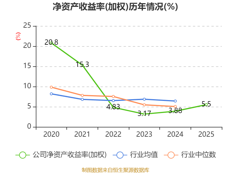 数据显示,2025年公司加权平均净资产收益率为5.5%,较上年同期上升1.62个百分点。公司2025年投入资本回报率为5.37%,较上年同期上升1.93个百分点。