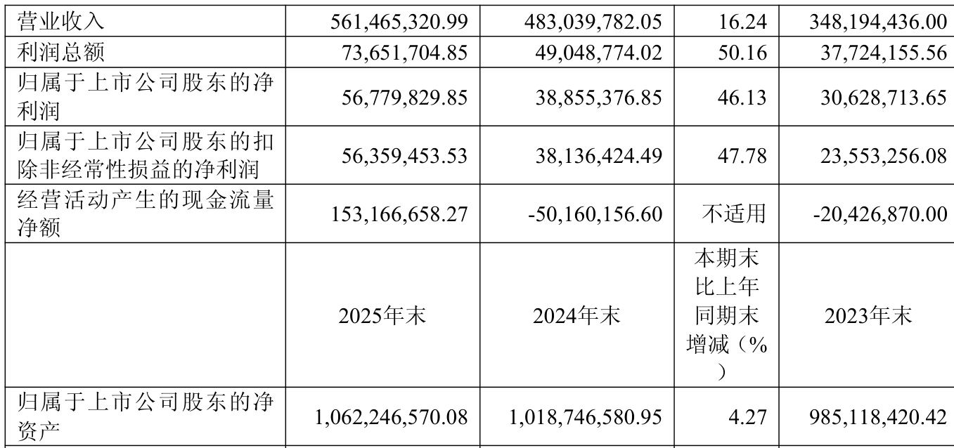 中证智能财讯必得科技(605298)4月10日披露2025年年度报告。2025年,公司实现营业总收入5.61亿元,同比增长16.24%;归母净利润5677.98万元,同比增长46.13%;扣非净利润5635.95万元,同比增长47.78%;经营活动产生的现金流量净额为1.53亿元,上年同期为-5016.02万元;报告期内,必得科技基本每股收益为0.31元,加权平均净资产收益率为5.50%。公司2025年度分配预案为:拟向全体股东每10股派现2元(含税)。