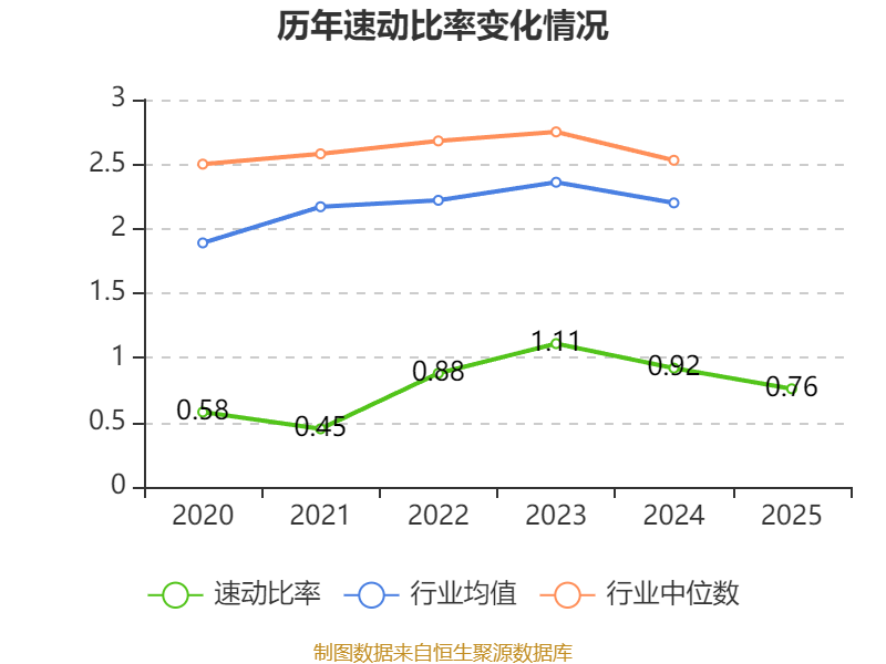 2025年,公司流动比率为0.91,速动比率为0.76。
