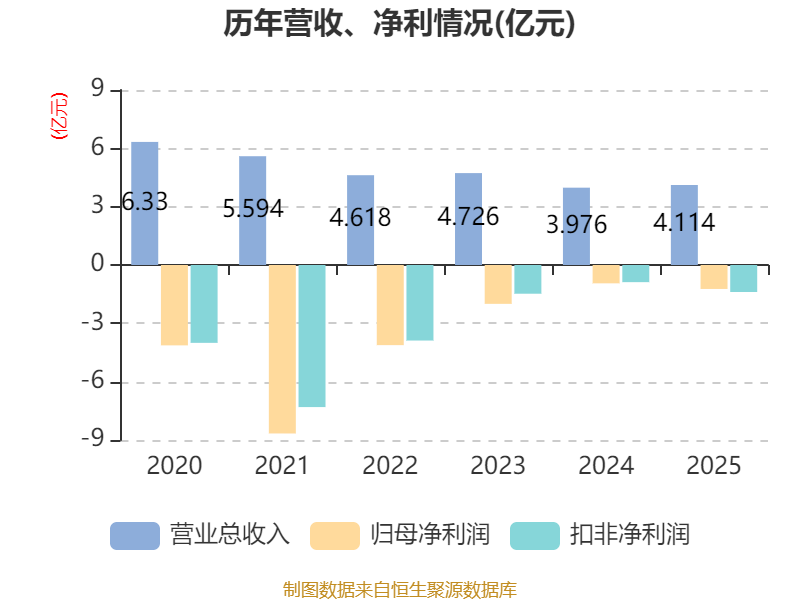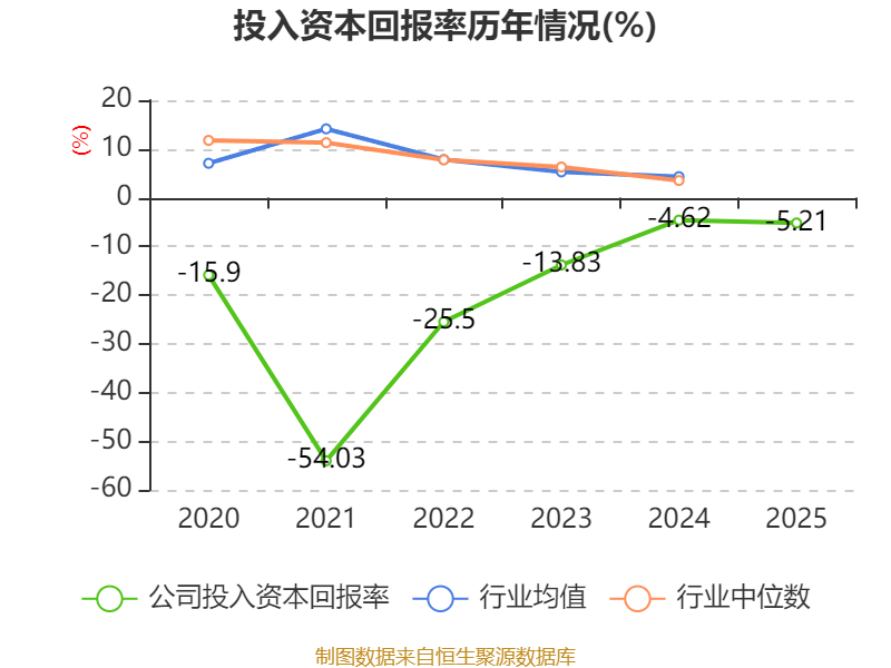 数据显示,2025年公司加权平均净资产收益率为-24.47%,较上年同期下降8.04个百分点。公司2025年投入资本回报率为-5.21%,较上年同期下降0.59个百分点。