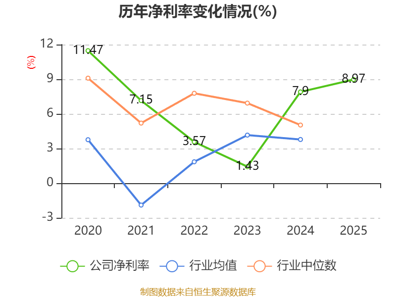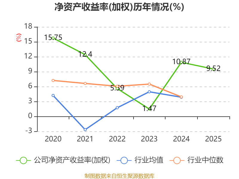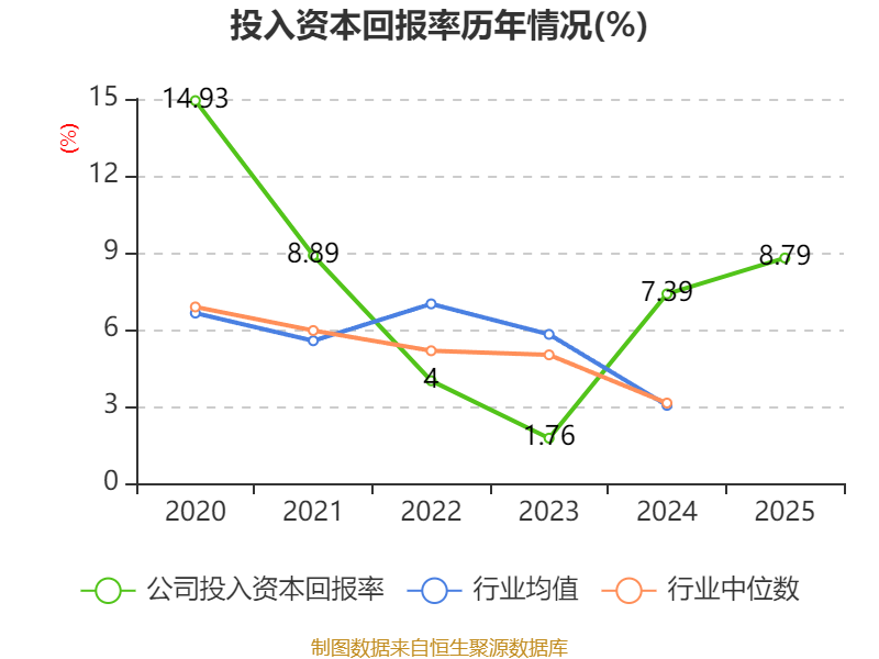 数据显示,2025年公司加权平均净资产收益率为9.52%,较上年同期下降1.35个百分点。公司2025年投入资本回报率为8.79%,较上年同期上升1.4个百分点。