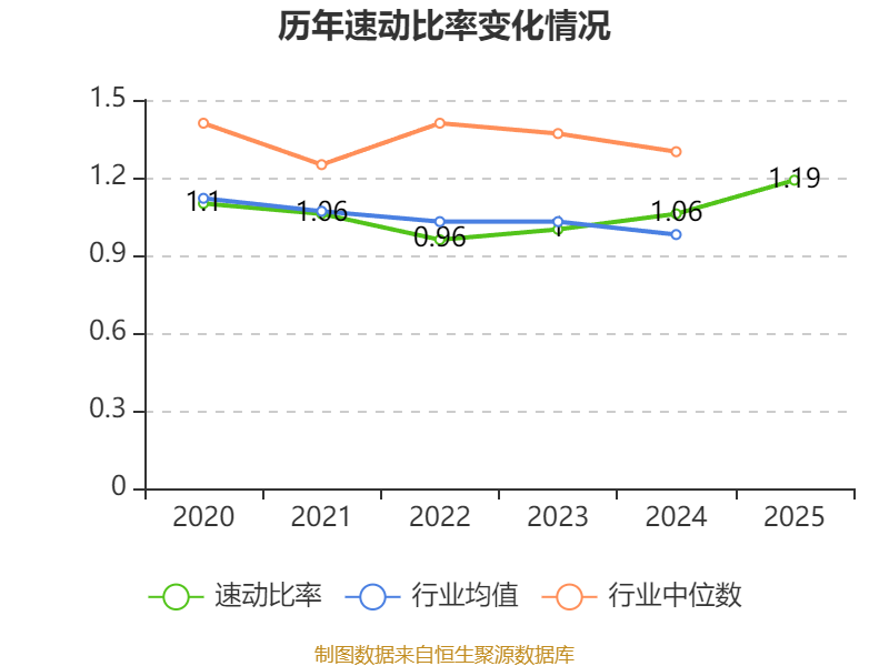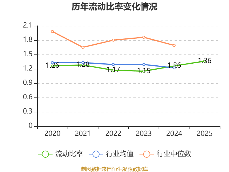 2025年,公司流动比率为1.36,速动比率为1.19。