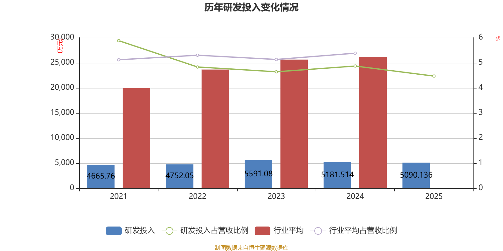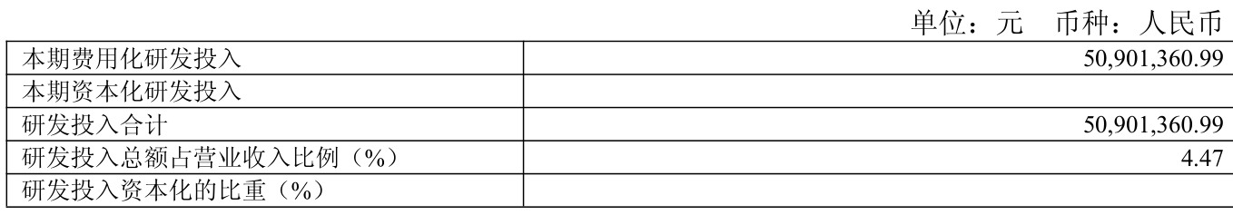 2025年全年,公司研发投入金额为5090.14万元,同比下降1.76%;研发投入占营业收入比例为4.47%,相比上年同期下降0.4个百分点。此外,公司全年研发投入资本化率为0%。