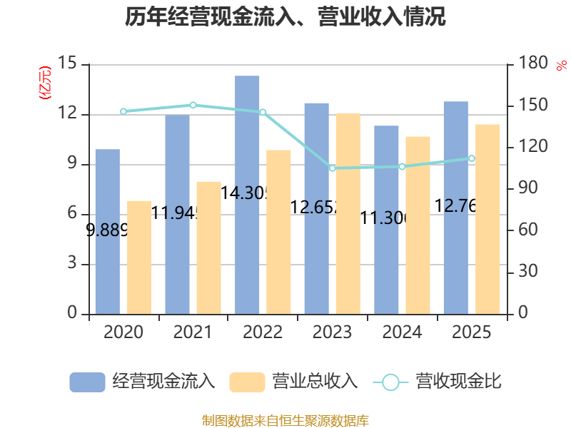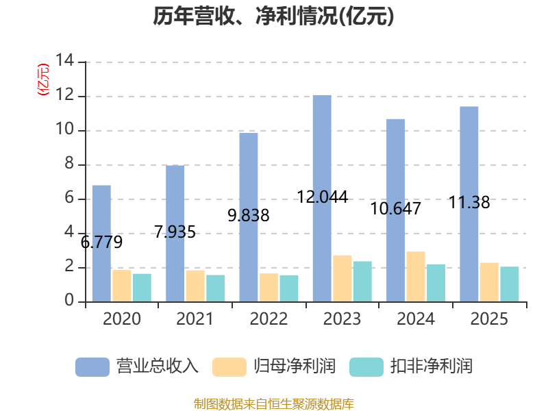 中证智能财讯力聚热能(603391)4月10日披露2025年年度报告。2025年,公司实现营业总收入11.38亿元,同比增长6.88%;归母净利润2.26亿元,同比下降22.40%;扣非净利润2.03亿元,同比下降5.98%;经营活动产生的现金流量净额为3.46亿元,同比增长20.02%;报告期内,力聚热能基本每股收益为2.48元,加权平均净资产收益率为10.37%。公司2025年度分配预案为:拟向全体股东每10股派现15元(含税)。