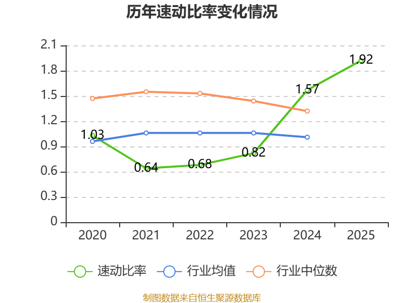 2025年,公司流动比率为2.45,速动比率为1.92。