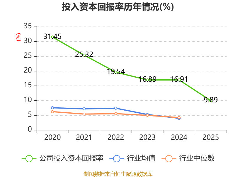 数据显示,2025年公司加权平均净资产收益率为10.37%,较上年同期下降8.16个百分点。公司2025年投入资本回报率为9.89%,较上年同期下降7.02个百分点。