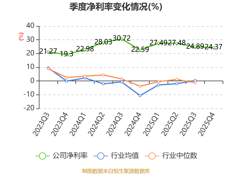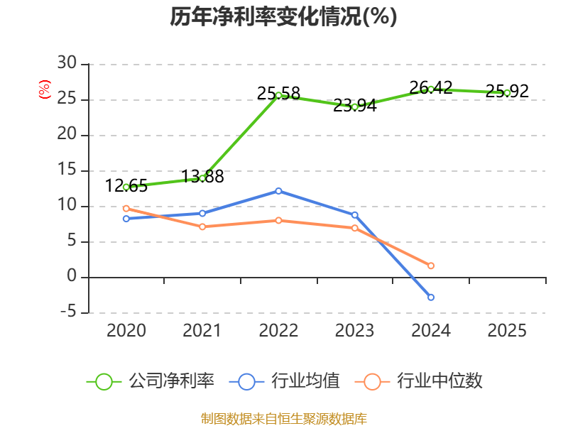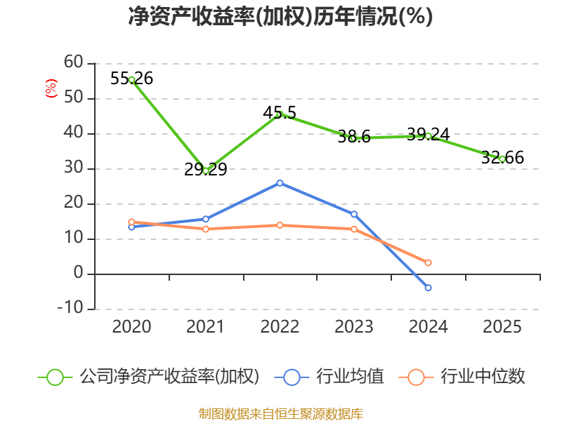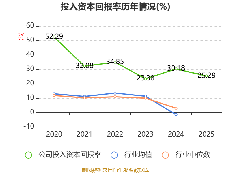 数据显示,2025年公司加权平均净资产收益率为32.66%,较上年同期下降6.58个百分点。公司2025年投入资本回报率为25.29%,较上年同期下降4.89个百分点。