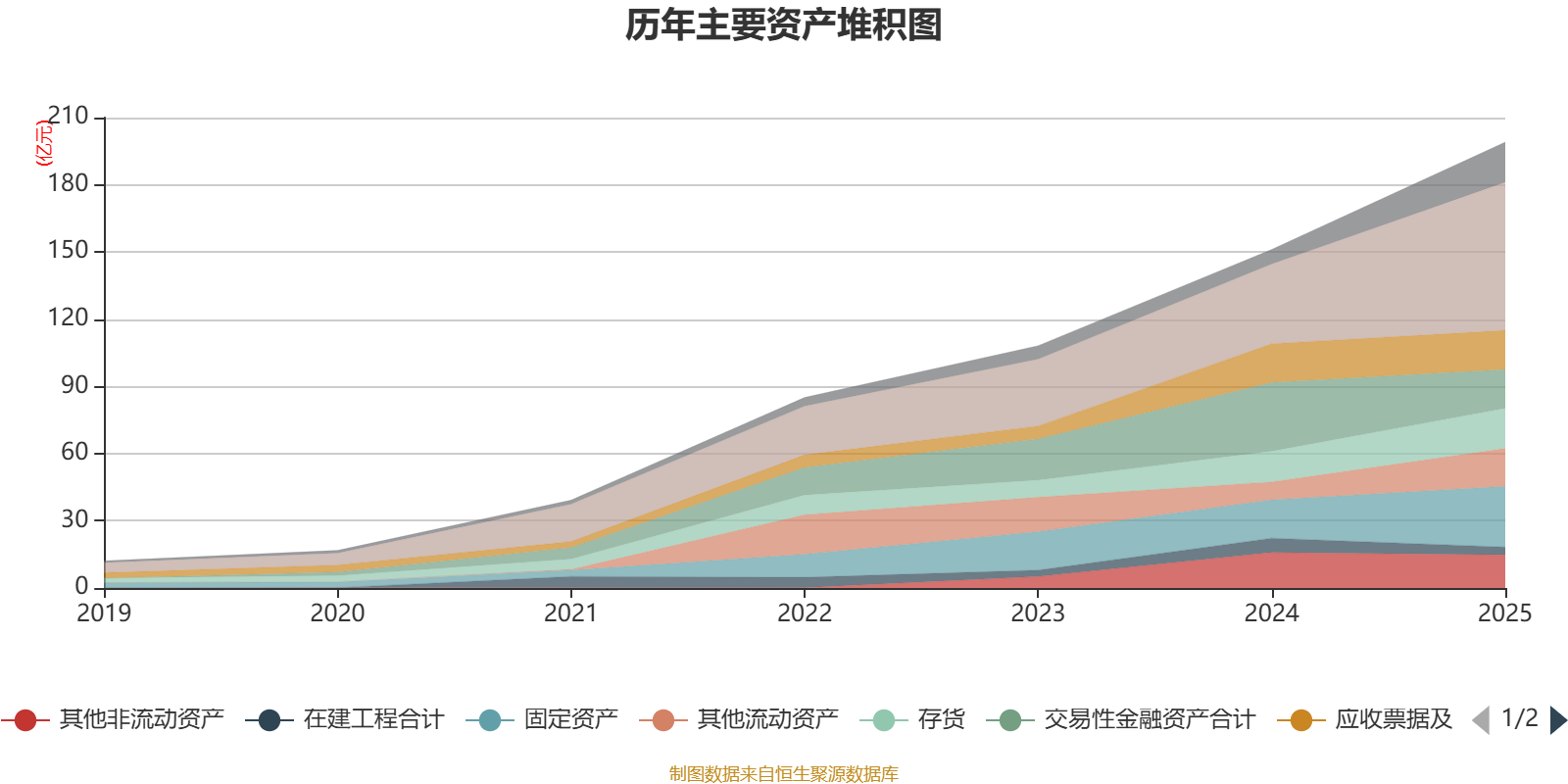 资产重大变化方面,截至2025年末,公司交易性金融资产合计较上年末减少43.59%,占公司总资产比重下降11.64个百分点;货币资金较上年末增加85.98%,占公司总资产比重上升9.69个百分点;一年内到期的非流动资产占公司总资产的3.69%,上年末为0;其他流动资产较上年末增加112.86%,占公司总资产比重上升3.25个百分点。