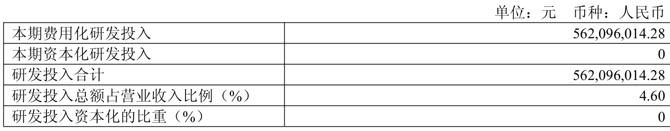 2025年全年,公司研发投入金额为5.62亿元,同比增长2.4%;研发投入占营业收入比例为4.6%,相比上年同期下降0.3个百分点。此外,公司全年研发投入资本化率为0%。