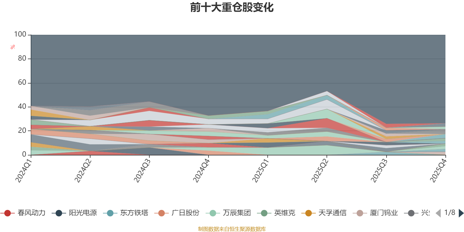 截至2025年末,基金十大重仓股分别是中国卫星、亚翔集成、微芯生物、厦门钨业、江波龙、中钨高新、亚太股份、洛阳钼业、中国东航、首钢股份。