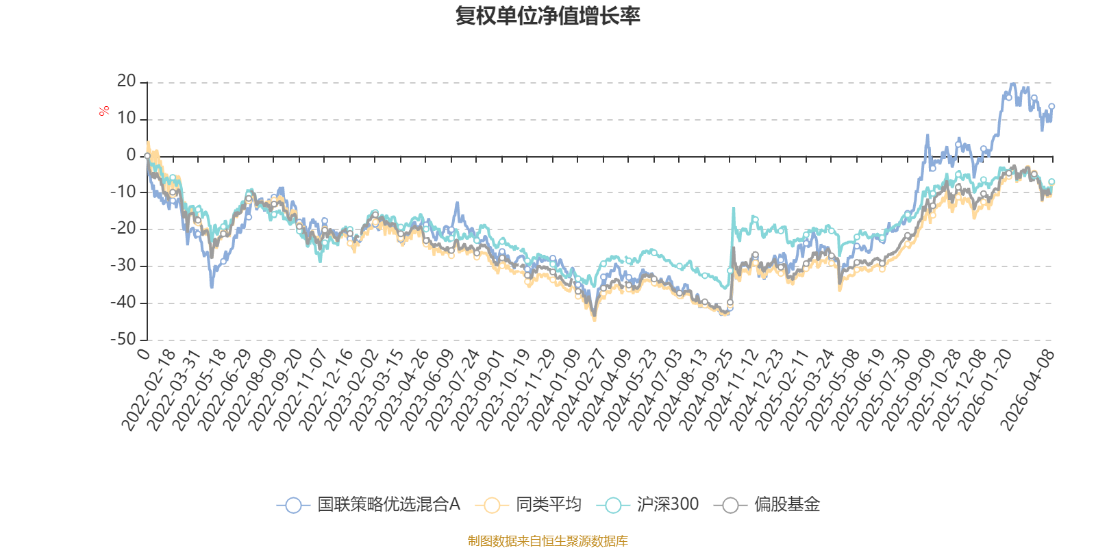 截至4月8日,国联策略优选混合A近三个月复权单位净值增长率为1.26%,位于同类可比基金103/265;近半年复权单位净值增长率为11.58%,位于同类可比基金44/265;近一年复权单位净值增长率为76.98%,位于同类可比基金34/265;近三年复权单位净值增长率为37.95%,位于同类可比基金51/261。