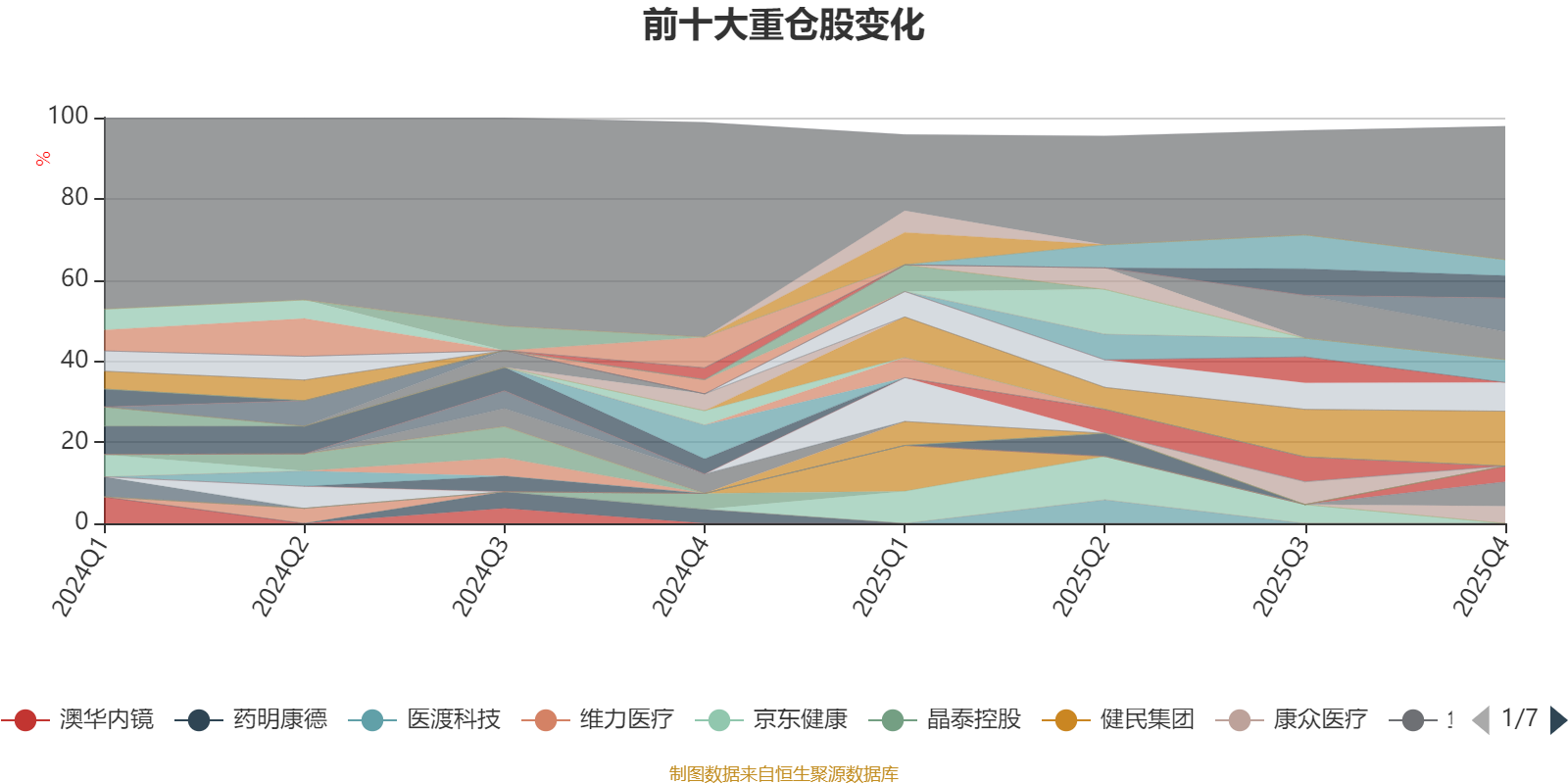 截至2025年末,基金十大重仓股分别是医脉通、ST人福、春立医疗、华大智造、鱼跃医疗、固生堂、润达医疗、康众医疗、奕瑞科技、美年健康。