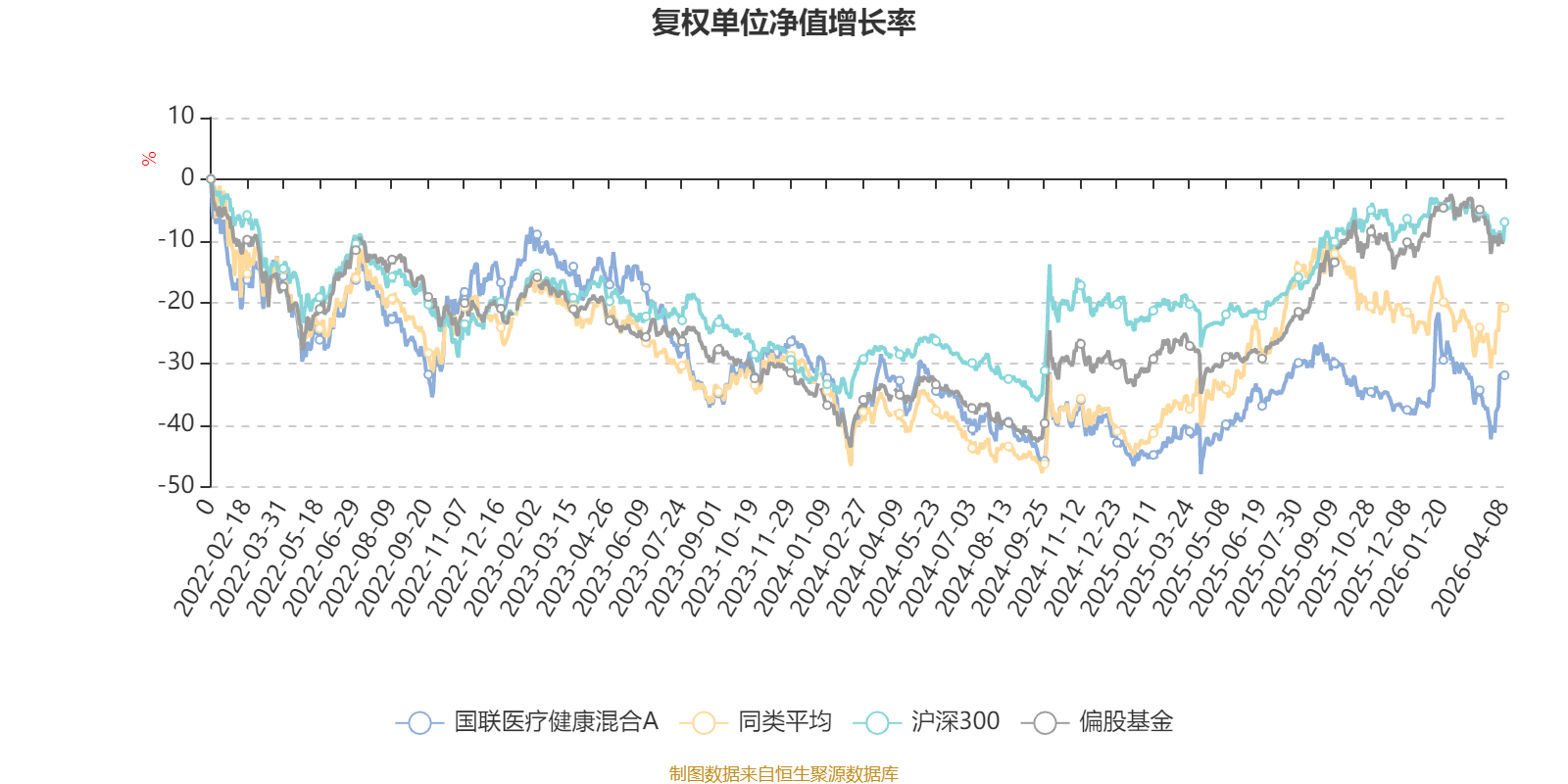 截至4月8日,国联医疗健康混合A近三个月复权单位净值增长率为2.72%,位于同类可比基金7/106;近半年复权单位净值增长率为0.40%,位于同类可比基金9/106;近一年复权单位净值增长率为25.31%,位于同类可比基金61/104;近三年复权单位净值增长率为-20.10%,位于同类可比基金70/78。