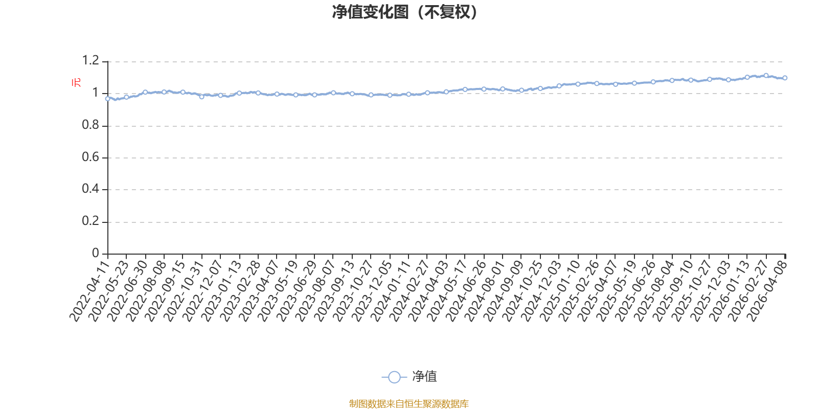该基金属于偏债混合型基金。截至4月8日,单位净值为1.097元。基金经理是陈薪羽、霍顺朝和叶天垚。