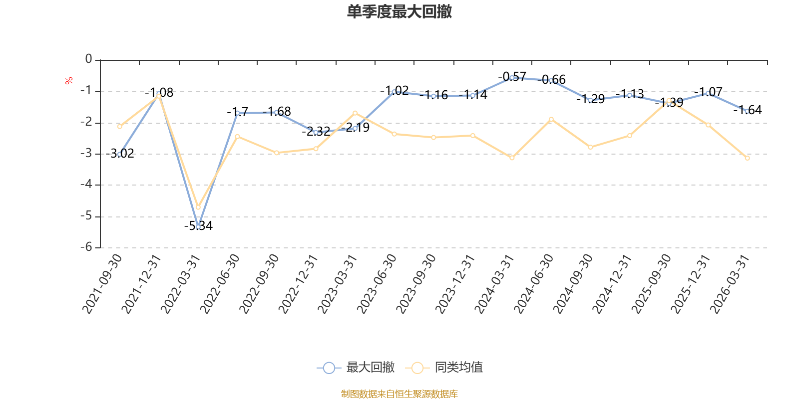 截至4月8日,基金近三年最大回撤为2.02%,同类可比基金排名17/534。单季度最大回撤出现在2022年一季度,为5.34%。