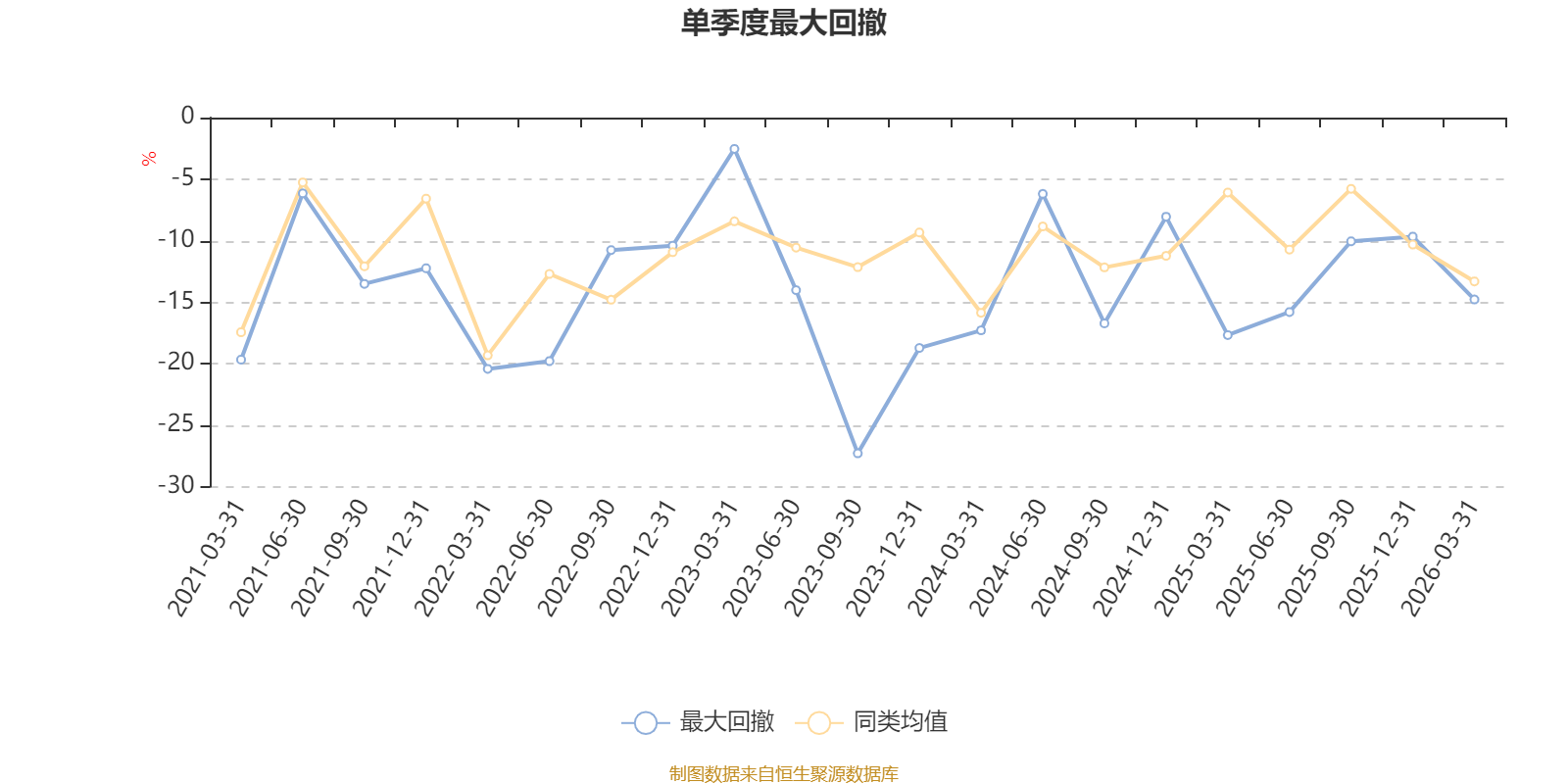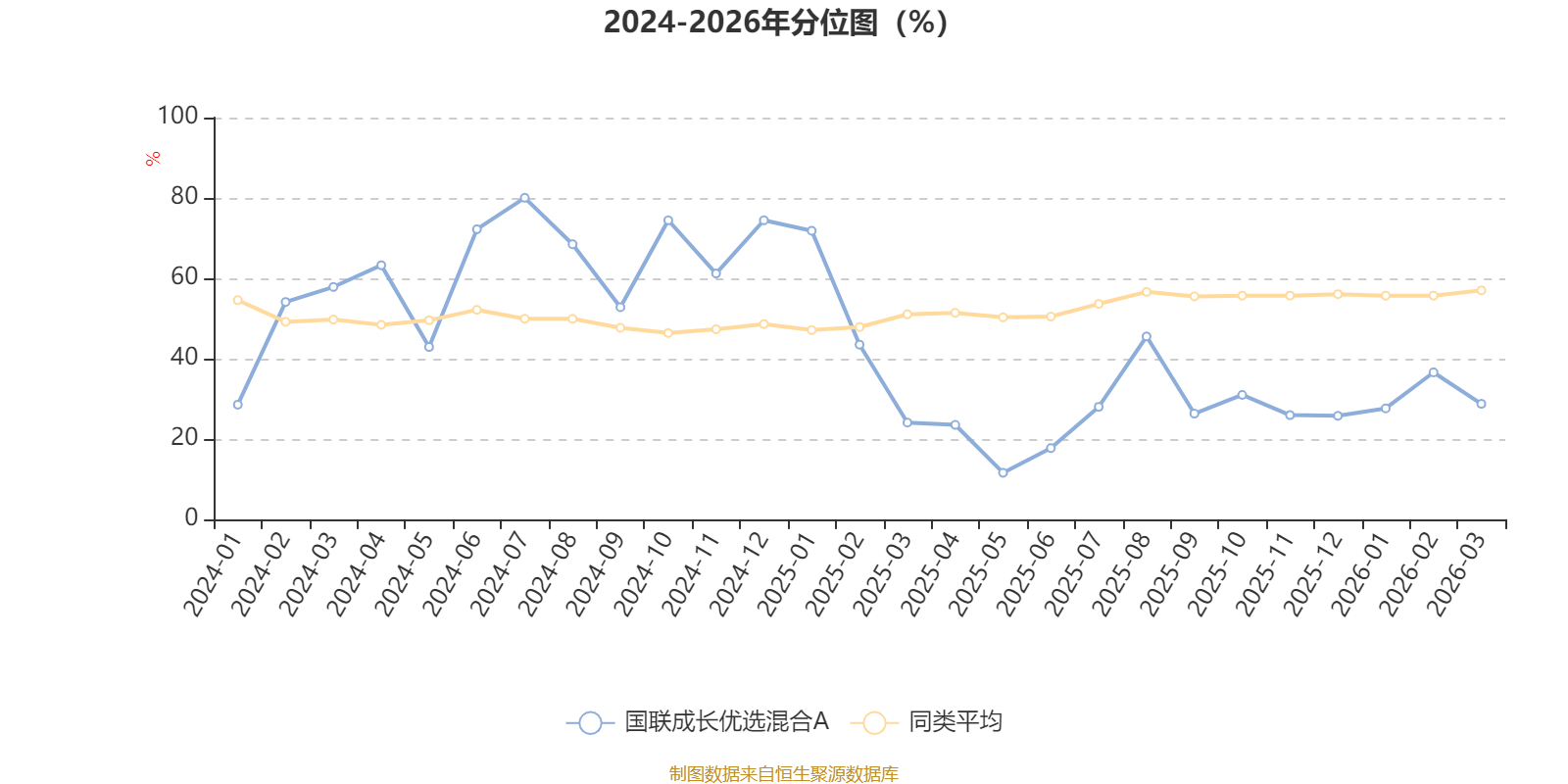 通过所选区间该基金净值增长率分位图,可以观察该基金与同类基金业绩比较情况。图为坐标原点到区间内某时点的净值增长率在同类基金中的分位数。