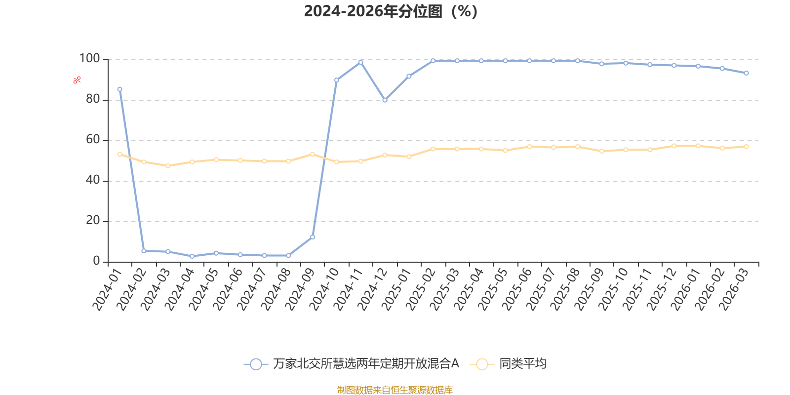AI基金万家北交所慧选两年定期开放混合A(014277)披露2025年年报,2025年基金利润2.3亿元,加权平均基金份额本期利润0.7315元。报告期内,基金净值增长率为63.78%,截至2025年末,基金规模为1.68亿元。
