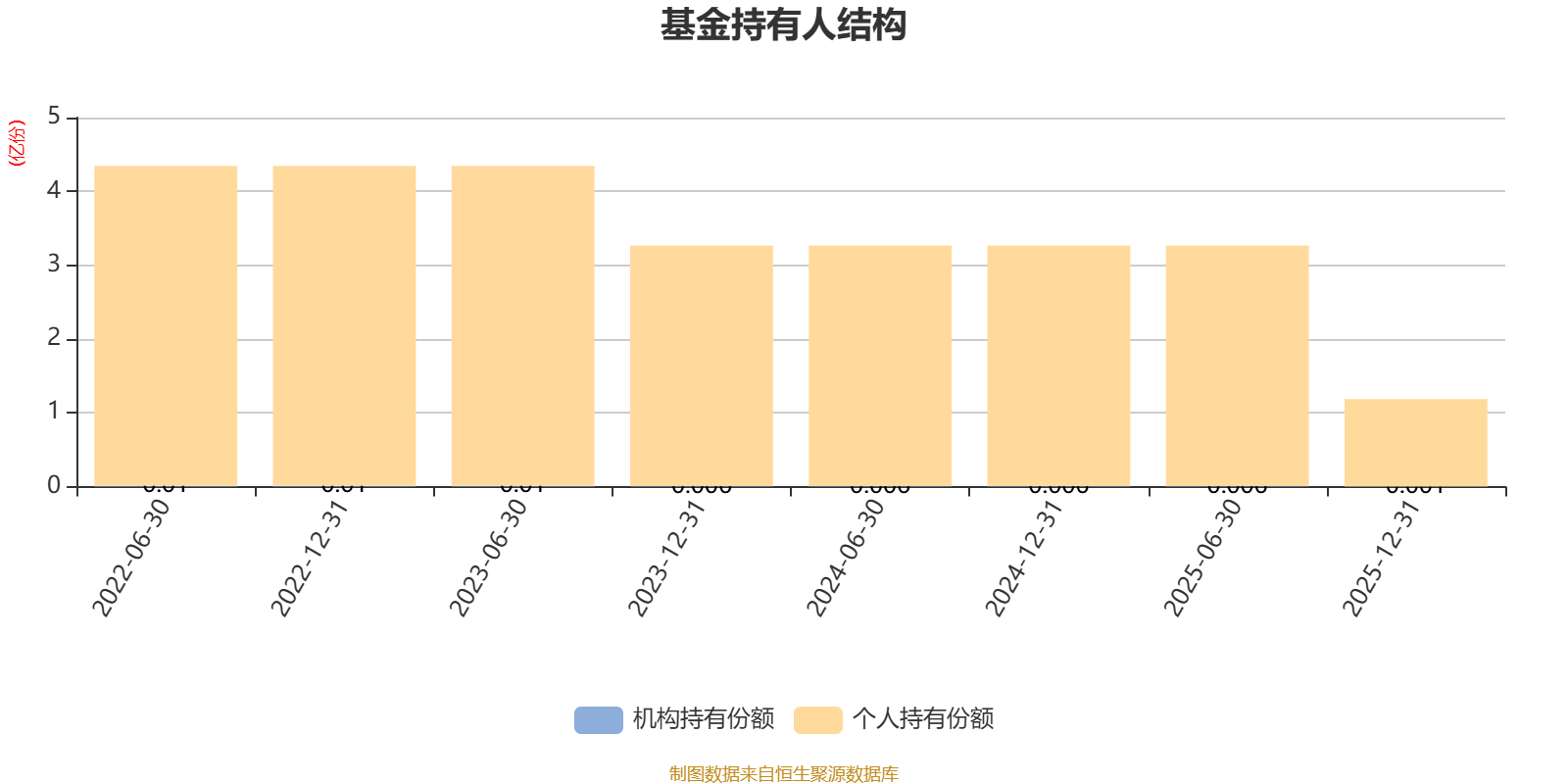 截至2025年12月31日,基金持有人共计1.07万户,合计持有1.19亿份。其中管理人员工持有2.62万份,占比0.02%,机构持有份额占比0.09%,个人投资者占比99.91%。