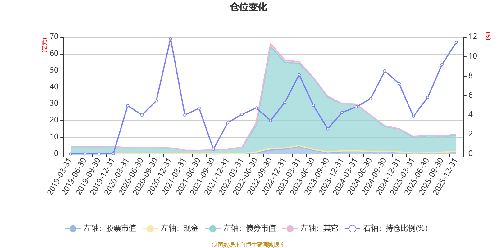 据定期报告数据统计,近三年平均股票仓位为6.38%,同类平均为72.57%。2020年末基金达到11.86%的最高仓位,2019年末最低,为0.04%。