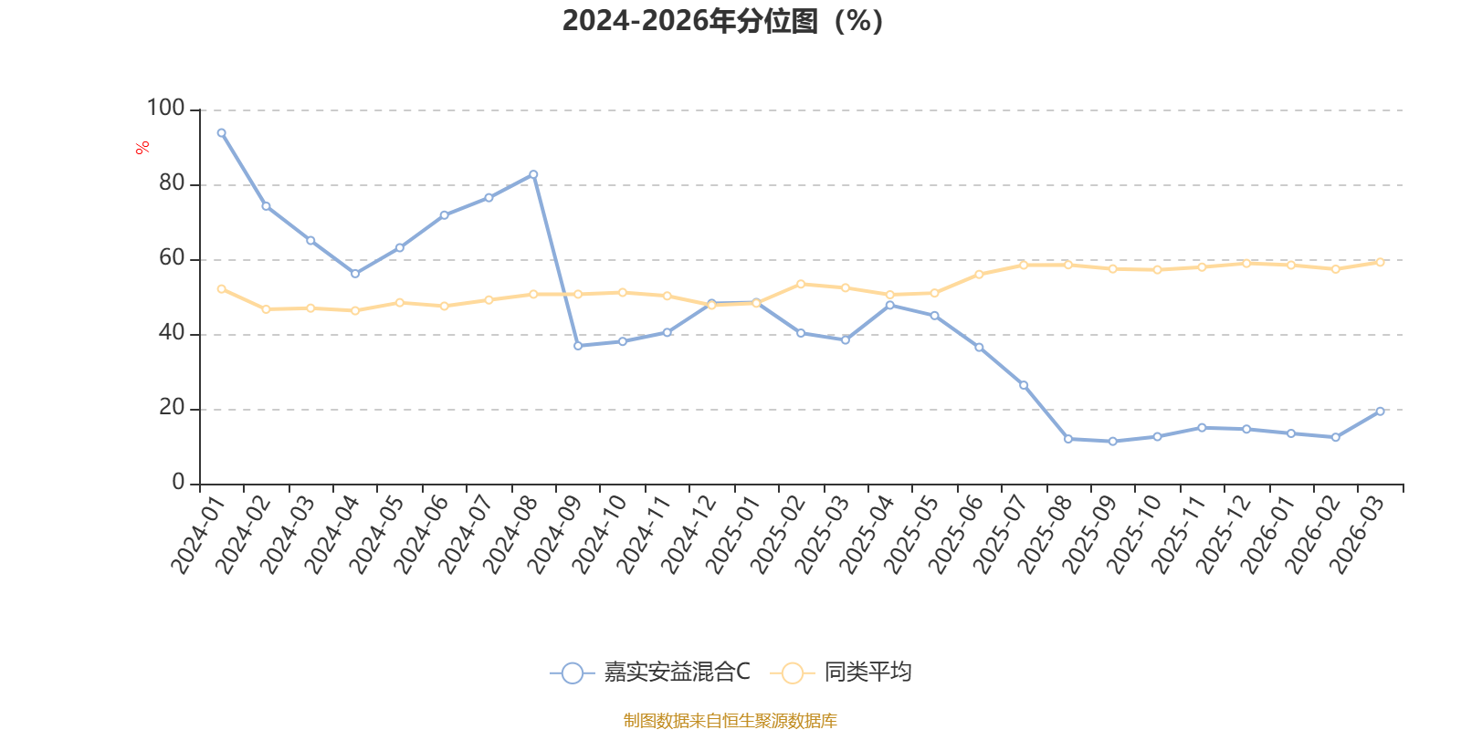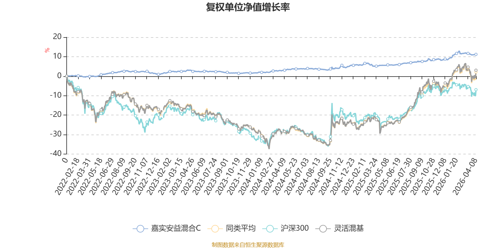 截至4月8日,嘉实安益混合C近三个月复权单位净值增长率为0.50%,位于同类可比基金586/1287;近半年复权单位净值增长率为2.44%,位于同类可比基金656/1286;近一年复权单位净值增长率为5.41%,位于同类可比基金1170/1286;近三年复权单位净值增长率为7.73%,位于同类可比基金778/1286。